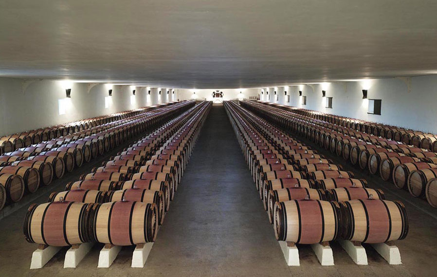 Below the Chai at Chateau Mouton. Also Baron Philippe Rothschild (1902-1988) and his daughter Baroness Philppine Rothschild.